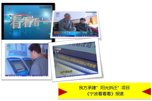我公司研发的房屋征收软件(阳光征收)获得宁波讲大道及宁波电视台多方报道。并在实践中中,为宁波的拆迁征收做出了巨大的贡献。