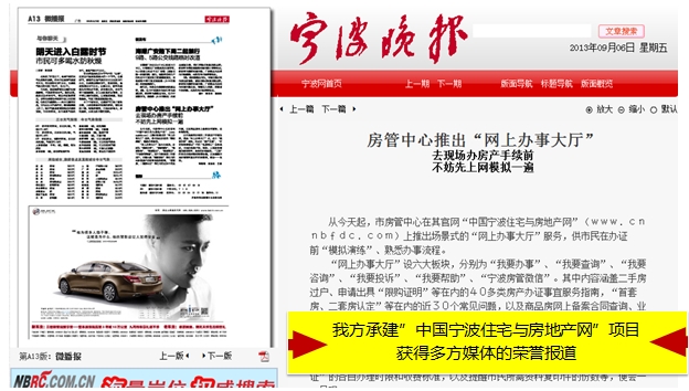 我公司承建的市房管中心推出网上办事大厅,相关报道内容如下: 商报讯(记者 林伟 通讯员 胡初枝 王磊)继推出“宁波房管”官方微信后,市房管中心今天推出“网上办事大厅”,把枯燥乏味的长篇办事指南,以短小精悍的Flash动画的形式直观地在中心网站上展现出来。 市民登录中国宁波住宅与房地产网(www.cnnbfdc.com),点开网站主页上的网上服务大厅,即可进入。办事大厅设“我要办事”、“我要查询”、“我要咨询”、“我要投诉”、“我要帮助”、“宁波房管微信”六大板块。 在这个“大厅”里,市民可提前模拟想要办理的业务,并准备好相应材料,以免到时跑空趟。 此次开通的房产交易场景式服务,将原来分散的办事指南、“宁波房管”微信、业务查询、业务咨询、信访投诉、业务办理常见问题等内容整合在网上办事大厅中。 据介绍,网上办事大厅涵盖了40多类房产办证事宜服务指南、近30个常见问题解答,以及商品房网上备案合同查询、业务咨询等内容。东南商报原文链接:http://daily.cnnb.com.cn/dnsb/html/2013-09/06/content_644525.htm?div=-1宁波日报链接:http://daily.cnnb.com.cn/nbrb/html/2013-09/06/content_644619.htm?div=-1宁波晚报链接:http://daily.cnnb.com.cn/nbwb/html/2013-09/06/content_644543.htm?div=-1网上办事大厅链接:http://www.cnnbfdc.com/wsbs/index.html |