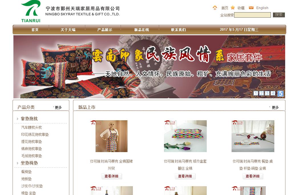 宁波市鄞州天瑞家居用品有限公司创建于2008年,专业生产家用纺织品:靠垫、桌旗、台布、餐垫、床品...