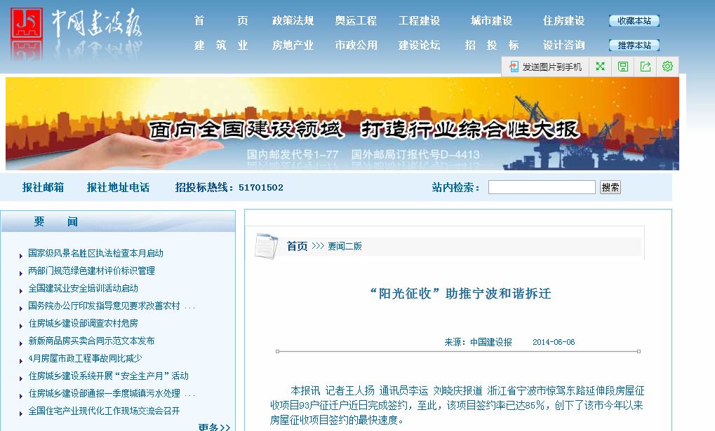 我公司研发的房屋征收软件(阳光征收)获多方报道,并为宁波的拆迁征收做出了巨大的贡献。