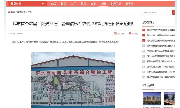 宽易公司在2016年6月初在丽水市白云街道建设试点实施“阳光征收”项目并获得圆满成功。