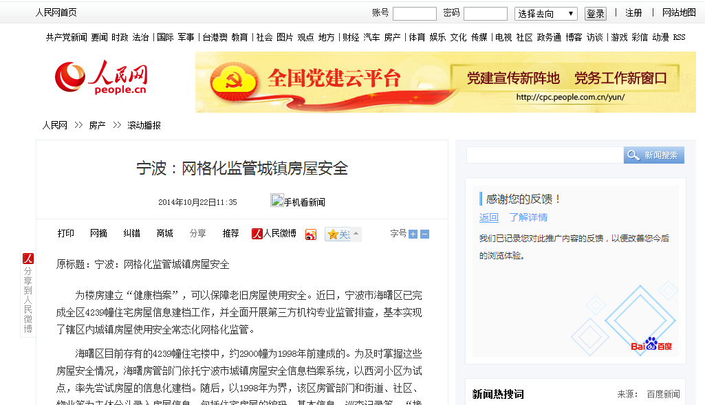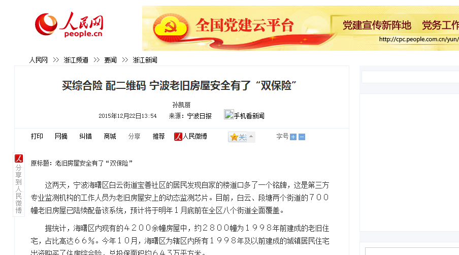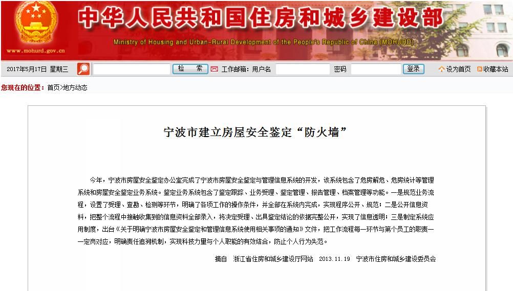 我方研发的宁波市房屋安全鉴定与管理信息系统取得相关媒体报道